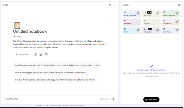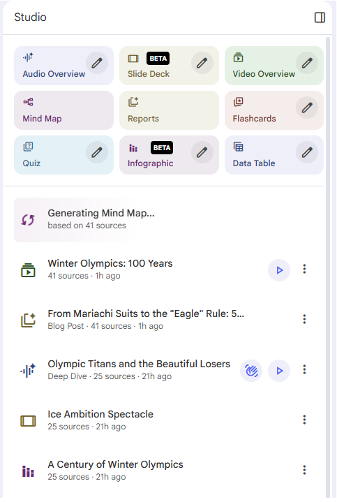 My favorite is the Audio Overview, which basically creates a podcast from the sources.