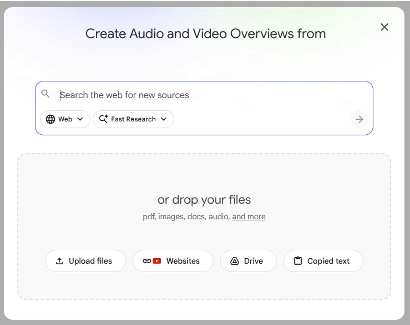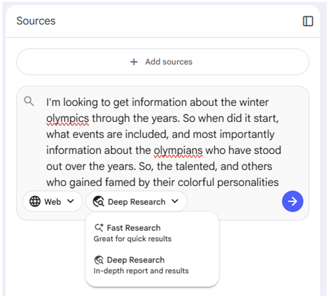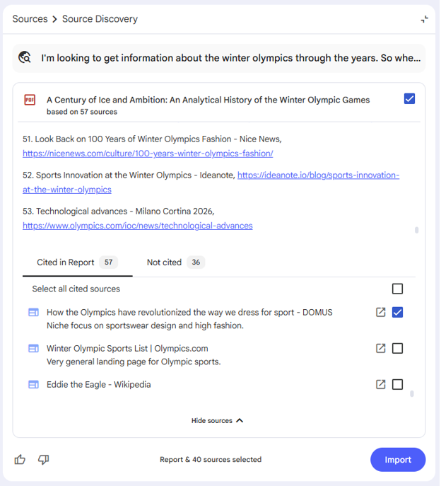 You’ll then get a popup where you can search for sources given the subject of your new notebook.